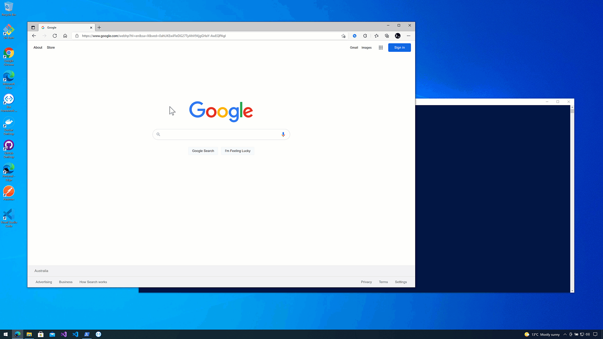 As the code runs, the bot web application is accessible at http://localhost:3978.