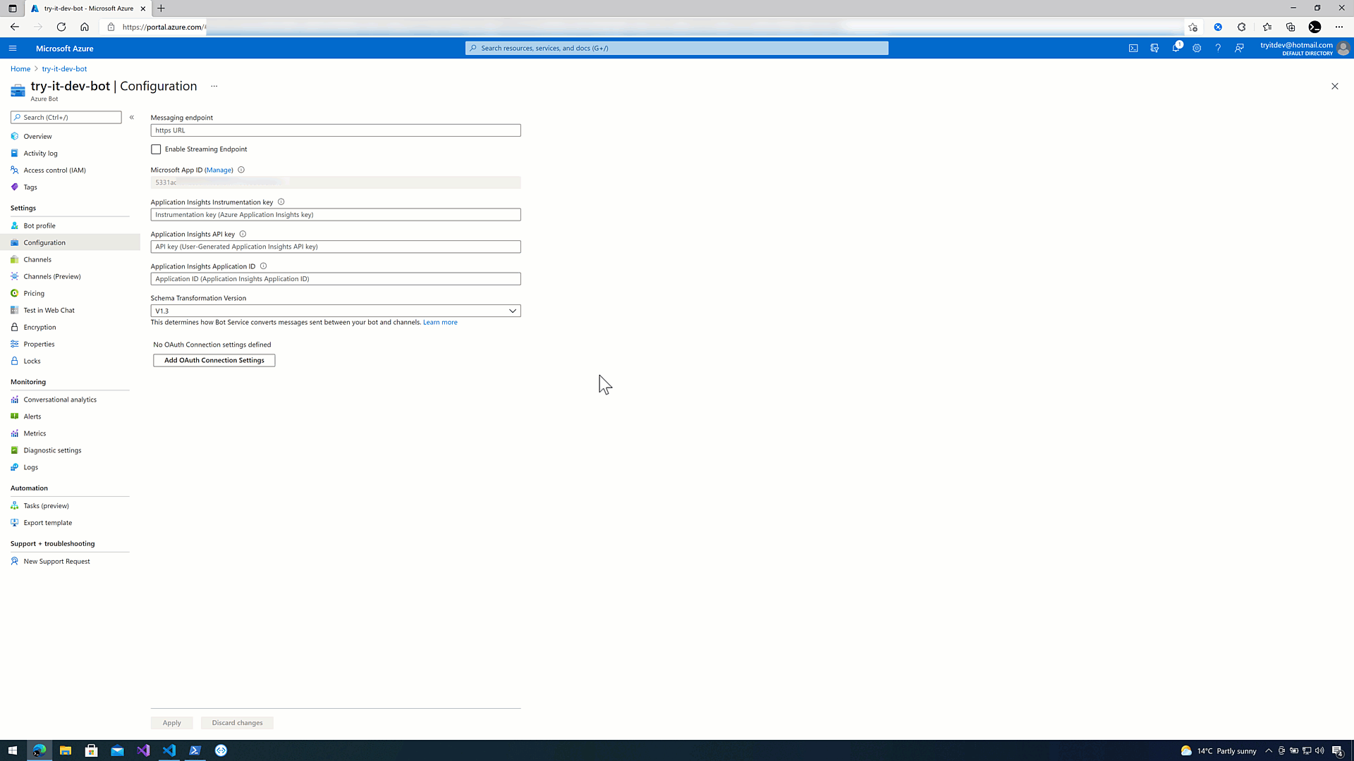 We now need to set the Messaging endoint in the Azure Bot Service.