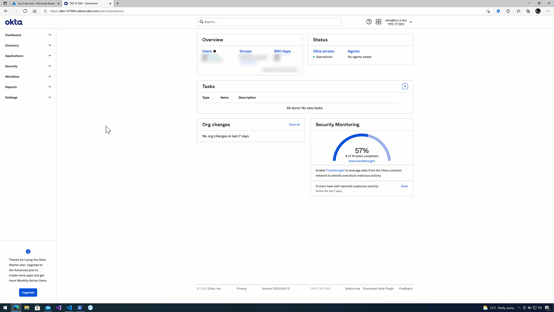 Apart from Azure, you also need access to an Okta tenant. If you don't have one, you can create one for free as shown here.