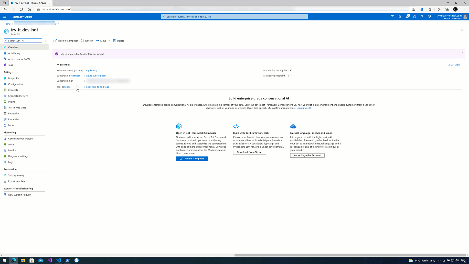 7. Configure your Azure Bot Service and test your bot