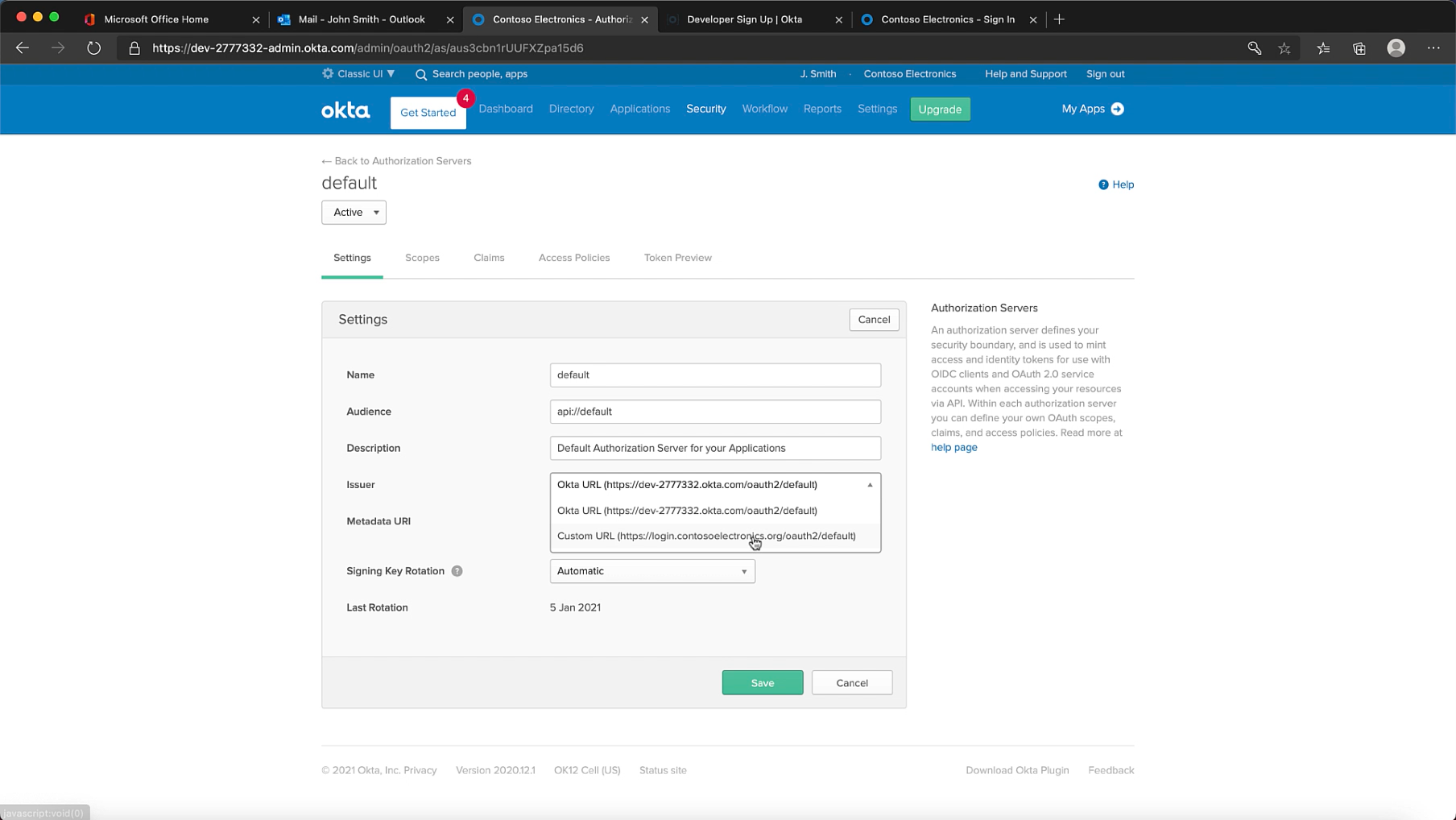 Its also important to update your issuer URI, which you can do under the API menu item under Security. You definitely want to do this before any integrations are in place.